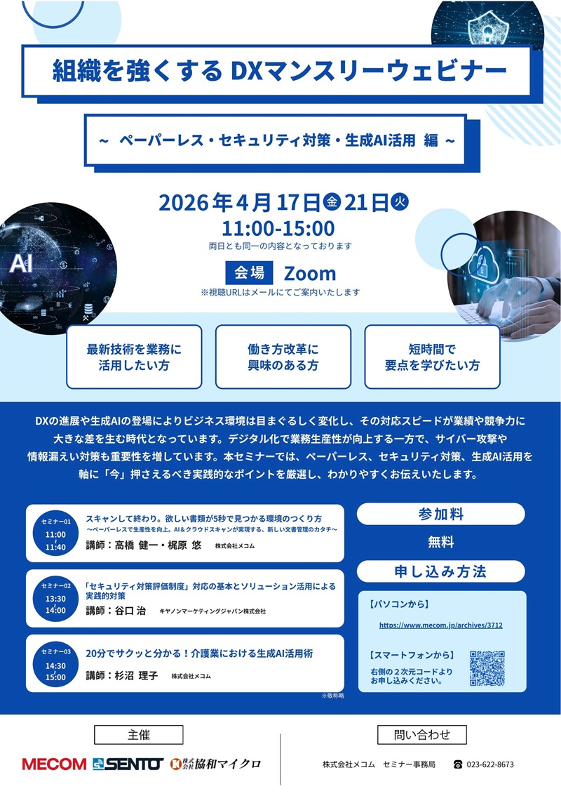 ~ペーパーレス・セキュリティ対策・生成AI活用編~ 【2026/4/17(金)・4/21(火) 11:00~15:00開催】